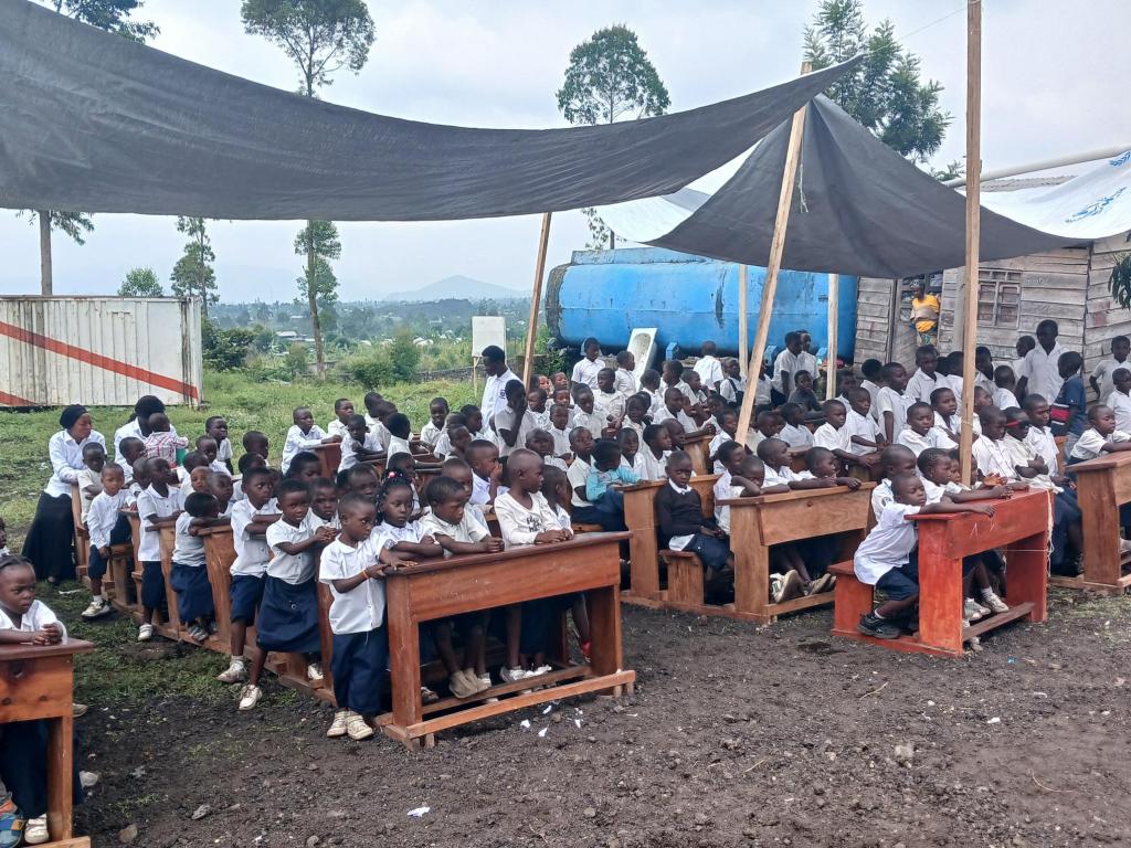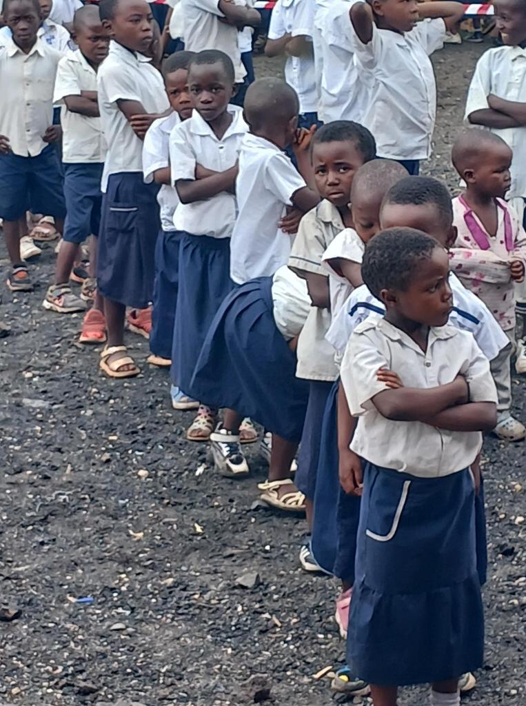 De beelden en geluiden van de zaterdag zijn bijzonder. Collega Mwaka haalt ons op voor een bezoek aan het schoolproject Maranatha dat hij een jaar of 5 geleden heeft opgezet. We zijn uitgenodigd op de laatste schoolochtend van het jaar. Toen ik van het project hoorde, heb ik enige familieleden en goede vrienden benaderd om een geldbedrag te doneren. Dankzij hen kan ik een prachtig bedrag overhandigen. We rijden naar de rand van Goma en hobbelen in Mwaka’s bejaarde autootje over een pad van lava stenen. In dit buitengebied zie je het arme, plattelandsleven. Mensen wonen in kleine, geïmproviseerde onderkomens en leven van wat maniokwortel, groente en fruit. We worden door de schooldirecteur begroet en er klinkt luid gezang. De inmiddels ongeveer 180 leerlingen, verdeeld over 6 klassen, hebben samen met de leerkrachten een heel programma voorbereid. Ook zijn ouders uitgenodigd, ik tel er een kleine 50. Het komt goed uit dat we juist nu bij dit eindejaarsfeest kunnen aansluiten. Er is een koortje, er zijn voordrachten, een jongetje moet een heus dictee correct op een ouderwets schoolbord kalken, we zijn getuigen van een Congolese vorm van ‘koekhappen’ en er is een quiz (4 meisjes tegen 4 jongens). Ook ik krijg een microfoon in handen gedrukt. Mwaka had mij gevraagd om diplomatiek te blijven en geen bedragen te noemen. Ouders zouden kunnen denken dat hun verplichte bijdragen niet meer nodig zijn. Vervolgens begint de zogenaamde proclamatie. Te beginnen bij de oudste groep, roept de klasse-onderwijzer in Swahili de 5 best-geslaagden van afgelopen trimester naar voren. Ze worden met applaus begroet en uitgebreid gefeliciteerd. Ik begrijp dat alle klasgenootjes bij naam worden genoemd, ook degenen die het trimester niet hebben gehaald. Je vraagt je af wat dat met die kinderen doet. Bij de een na oudste groep blijken de 5 besten van de klas allen meisjes te zijn. Ik zie ouders naar voren komen om hun ‘top 5 kinderen’ iets in de hand te frommelen. Snoepjes, denk ik. Aandoenlijk gewoon, om daarmee jouw trots voor je kind tot uitdrukking te brengen. Als alle klassen geweest zijn, neemt Mwaka de microfoon. Hij vertaalt de Swahili woorden voor ons in het Frans. ‘Het is niet erg als je het trimester niet gehaald hebt hoor. Ik begrijp heel goed dat er redenen voor kunnen zijn. Misschien moet je iedere dag wel heel ver lopen en ben je moe als je op school aankomt. Misschien heb je dan nog niets gegeten. Het kan ook zijn dat je veel ziek bent geweest, of dat je vader en moeder ruzie maken. Doe maar goed je best, er is nog tijd genoeg om het in te halen. Voor deze kinderen geen beelden en geluiden op een smart-schoolbord, iPhone of tablet. Overigens is daar feitelijk niet zo heel veel mis mee: in mijn schooltijd was dat er ook niet. Maar ik hoop voor die kinderen natuurlijk wel dat ook op dat gebied inhaalslagen in Congo mogelijk zullen zijn.
